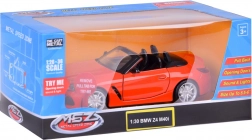 Questo cabriolet BMW Z4 M40i, lavorato nei minimi dettagli, si distingue per la qualità costruttiva che garantisce un aspetto autentico e un ottimo divertimento. La carrozzeria in metallo, le ruote in gomma e il telaio in plastica assicurano solidità e lunga durata. All’apertura delle porte si attivano i suoni del clacson e dell’allarme, accompagnati da luci lampeggianti anteriori e posteriori. Premendo il modello sulla superficie si avvia il suono di accensione e funzionamento del motore e si illumina anche il cruscotto.