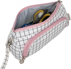 Per una migliore organizzazione, l'astuccio è dotato di una rete divisoria che separa lo spazio principale dalla patta anteriore. La patta anteriore ha la propria cerniera, facilitando un rapido accesso al suo contenuto senza la necessità di aprire la sezione principale. La presenza di cinque elastici garantisce un facile accesso agli strumenti usati frequentemente.