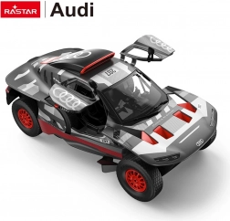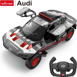 Il fedele modello radiocomandato AUDI RS Q e-tron del marchio RASTAR in scala 1:14 offre controllo preciso a 2,4 GHz, ruote in gomma, luci LED anteriori, porte apribili e sospensioni indipendenti. Grazie alla plastica ABS di qualità e agli interni realizzati nei dettagli, ti godrai una guida realistica con 2 velocità.
