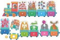 c ora di partire! Partiamo tra poco! c il momento di agganciare gli ultimi vagoni. Quante scimmie trasportiamo oggi? Viaggia con noi anche l'elefante? Quale carrozza porta pif9 animaletti?