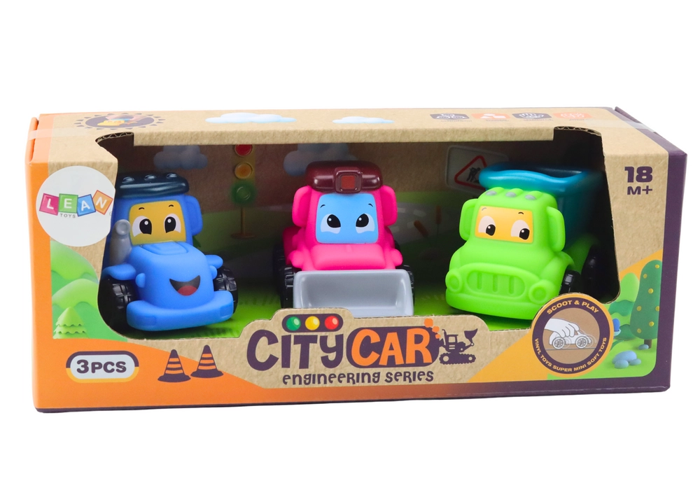 Il set di 3 macchinine agricole è un fantastico giocattolo per i bambini, che offre ore di gioco sicuro e creativo. I veicoli sono realizzati in gomma morbida e plastica resistente e non contengono spigoli vivi né piccole parti, quindi possono essere tranquillamente affidati anche ai più piccoli. Il set comprende tre simpatici veicoli: trattore, bulldozer e camion ribaltabile, ognuno con un volto amichevole e sorridente che conquista subito e invita al gioco.