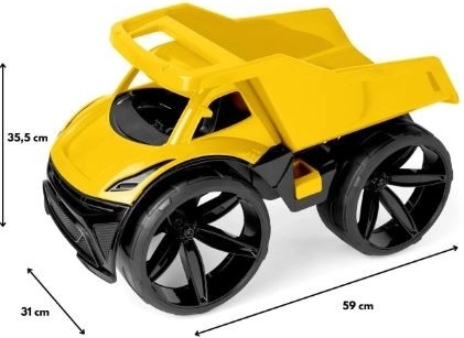MAXIMUS è un grande ribaltabile in un succoso colore rosso, caratterizzato da: design moderno, struttura solida e leggera, linea carrozzeria moderna con grandi ruote opache e splendidi dettagli. Inoltre ha una pompa mobile apribile e una comoda maniglia che consente un gioco vario e realistico, e può essere utilizzata per trasportare sabbia o altri giocattoli. Il veicolo è lungo 59 cm.