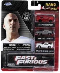 Vivi l'emozione con le nano auto del film Fast & Furious. Questo set di tre modelli dettagliati include vetture iconiche come Lykan Hypersport, Dodge Ice Charger e Supra bianca, che porteranno l'azione direttamente a casa tua.