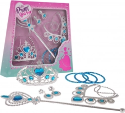 Questo set riccamente accessoriato trasforma ogni gioco in una fiaba magica. I lucenti “diamanti” in plastica e le imitazioni di pietre preziose nella finitura argento‑blu aggiungono un tocco di stile a ogni outfit da principessa. Gli accessori sono progettati con attenzione alla lavorazione dettagliata e alla comodità di indosso.