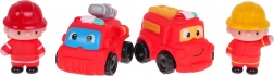 Set colorato per piccoli pompieri con 2 figurine di vigili del fuoco e 2 adorabili camion dei pompieri con sonaglini. Ideale per la fantasia dei bambini e il gioco di ruolo, realizzato in colori vivaci e adatto ai bambini dai 3 anni. Le figurine hanno testoline girevoli e un’automobilina e la figurina con casco giallo nascondono un sonaglino per un gioco ancora più divertente.