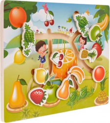 Questo puzzle in legno è progettato per i più piccoli che desiderano scoprire il mondo dei giocattoli attraverso il gioco. Contiene pezzi colorati che rappresentano diversi frutti, da inserire nella tavoletta in legno.