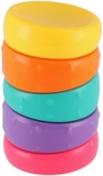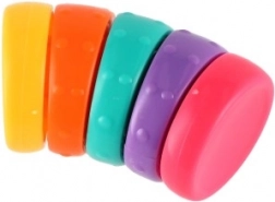 Presentiamo l'anello antistress arcobaleno: una piccola torre con 5 anelli colorati curvi che si incastrano perfettamente. Ogni anello ha texture e forme diverse, che favoriscono la motricità fine e stimolano la creatività.