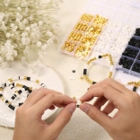 Con il nostro set creativo di perline, puoi creare non solo braccialetti, ma anche collane, orecchini e anelli: l'unico limite è la tua immaginazione! Colori classici come bianco, nero e dorato garantiscono che i gioielli risultanti non solo saranno unici, ma anche molto eleganti. I gioielli fatti a mano sono oggi uno degli accessori più alla moda.