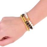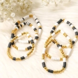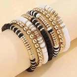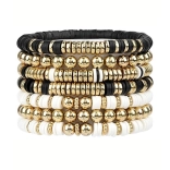 I braccialetti stilosi di questo set sono composti da perline nere, bianche e dorate, creando un sofisticato aspetto a strati, ideale per ogni occasione.