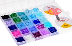 Il set è confezionato in un pratico contenitore trasparente a forma di valigetta, suddiviso in scomparti che evitano la miscelazione delle perline. Il set include anche 2 bobine di filo trasparente e forbici, permettendo di iniziare subito a lavorare sui gioielli desiderati.