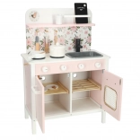 La combinazione di un delicato colore rosa e motivi floreali rende la cucina non solo un giocattolo, ma anche un bellissimo elemento decorativo.
