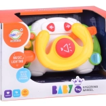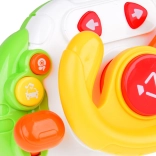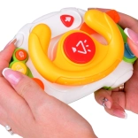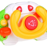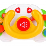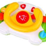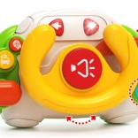 Il volante è progettato per entrare facilmente nel passeggino o nella borsa da viaggio. Grazie ai pulsanti intuitivi, i bambini imparano subito a usarlo: pulsante rosso per il clacson, giallo per le melodie (3 tipi) e blu per suoni e musica (4 tipi). Durante la riproduzione della musica, il centro del volante si illumina a ritmo.