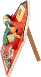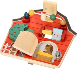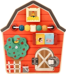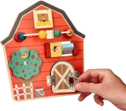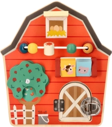 Questa lavagna attiva in legno a forma di fienile è progettata per stimolare la motricità fine e il divertimento nei bambini. Con un tema di fattoria colorata e vivace, non solo educa ma intrattiene anche i membri più piccoli della famiglia. Gli elementi interattivi come perline scorrevoli, albero rotante e porticine con serratura aiutano a sviluppare la coordinazione mano-occhio.