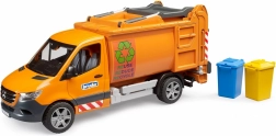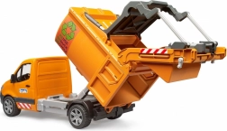 Questo camion urbano della spazzatura BRUDER riproduce fedelmente il vero MERCEDES-BENZ Sprinter. Grazie alle dimensioni compatte arriva ovunque i grandi camion dei rifiuti non riescono a passare. Durante il ribaltamento dei bidoni, la paratia sul tetto si apre automaticamente e si richiude al termine. Le porte posteriori ribaltabili consentono di svuotare facilmente il carico.