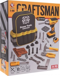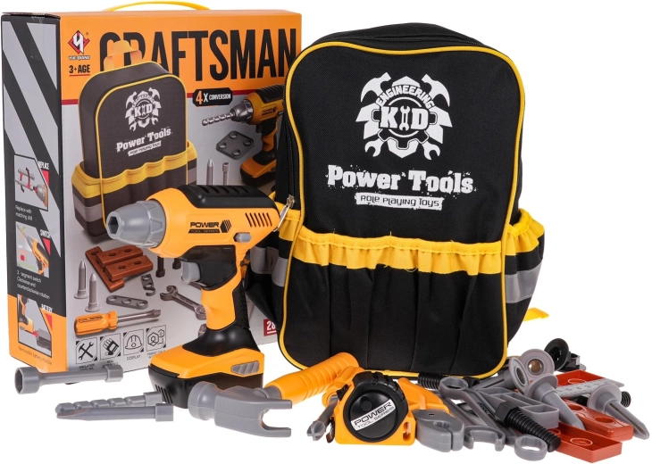 Il set di attrezzi per bambini con zaino contiene tutto ciò di cui un piccolo artigiano ha bisogno. Equipaggiamento ricco comprende 28 elementi, tra cui metro, martello, pinze, chiavi e molto altro.