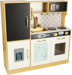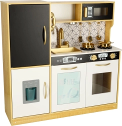 La cucina in legno LULILO per bambini è ideale per lo sviluppo della loro creatività e abilità manuali. La combinazione di un design moderno e un'elegante realizzazione con elementi realistici come effetti luminosi e sonori garantisce ore di divertimento.