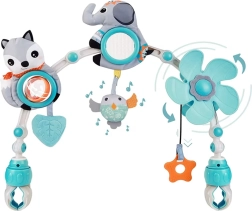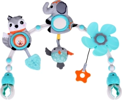 Questa splendida e funzionale palestra sospesa è un complemento ideale non solo per la culla, ma anche per passeggini o seggiolini auto. Ha elementi colorati e interessanti che attirano l'attenzione del bambino, aiutano a calmarlo e stimolano la sua curiosità. La palestra sospesa contiene elementi come massaggiagengive, componenti sonori e girevoli. Ha anche clip solide e flessibili che facilitano il montaggio su varie superfici.
