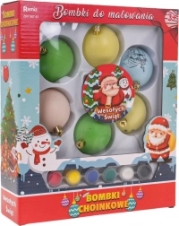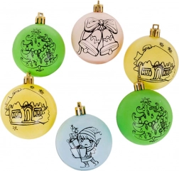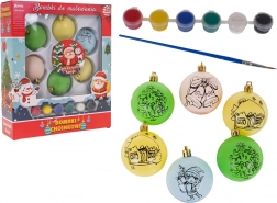 Questo set contiene 6 decorazioni da dipingere, adatte ai bambini dai 3 anni. Ogni decorazione è ricoperta da uno strato con motivo natalizio che potete colorare secondo la vostra fantasia. Il set include anche colori con pennello e cordini aggiuntivi per appenderle.