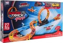 Grande pista da corsa con curve strette, looping e due macchinine incluse, ideale per bambini dai 3 anni. Include 27 pezzi per l'assemblaggio fai da te.