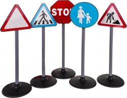 Questo set di segnali stradali include cinque segnali diversi: stop, attraversamento pedonale, triangolo di avvertimento, lavori in corso e marciapiede. Sono realizzati in plastica di qualità e rifiniti in modo realistico con attenzione ai dettagli. Sono dimensionati in base all’altezza del bambino, il che li rende un giocattolo educativo ideale per i più piccoli.