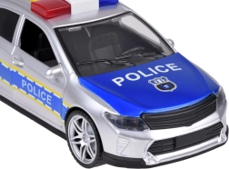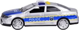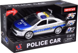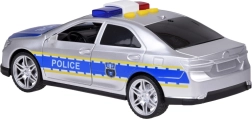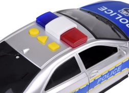 Un'auto della polizia realistica per i piccoli tutori della legge offre effetti luminosi e sonori, porte anteriori apribili e ruote in gomma antiscivolo. Tre pulsanti attivano sirene, clacson e suono di avviamento del motore. Dimensioni compatte 24 × 12 × 9 cm, alimentazione 2× AAA (incluse nella confezione).
