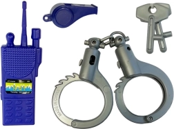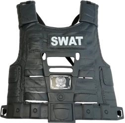 Il gilet tattico, la ricetrasmittente, le manette, il fischietto, il distintivo e la fondina permettono ai bambini di calarsi nell’azione come veri poliziotti o unità SWAT.