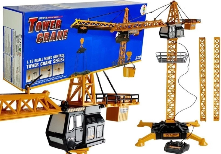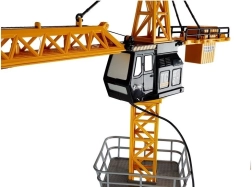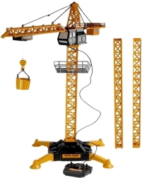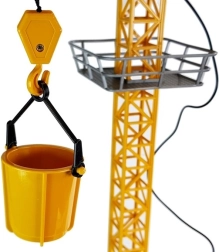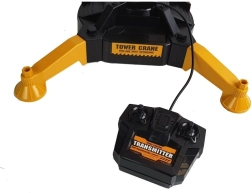 Il telecomando che opera alla frequenza di 27 MHz consente di ruotare la parte superiore della gru e di abbassare il cavo per trasportare gli oggetti sul posto. La posizione del gancio sul braccio della gru si cambia manualmente. La struttura della gru è composta da parti che si incastrano facilmente, facilitandone il montaggio. È necessario assicurarsi che il cavo sia fissato dritto e non sia attorcigliato.