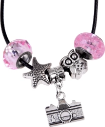 - 3 braccialetti in metallo; 3 cordini cerati con chiusura; perline/cristalli colorati; ciondoli (charms); borsa regalo in carta
