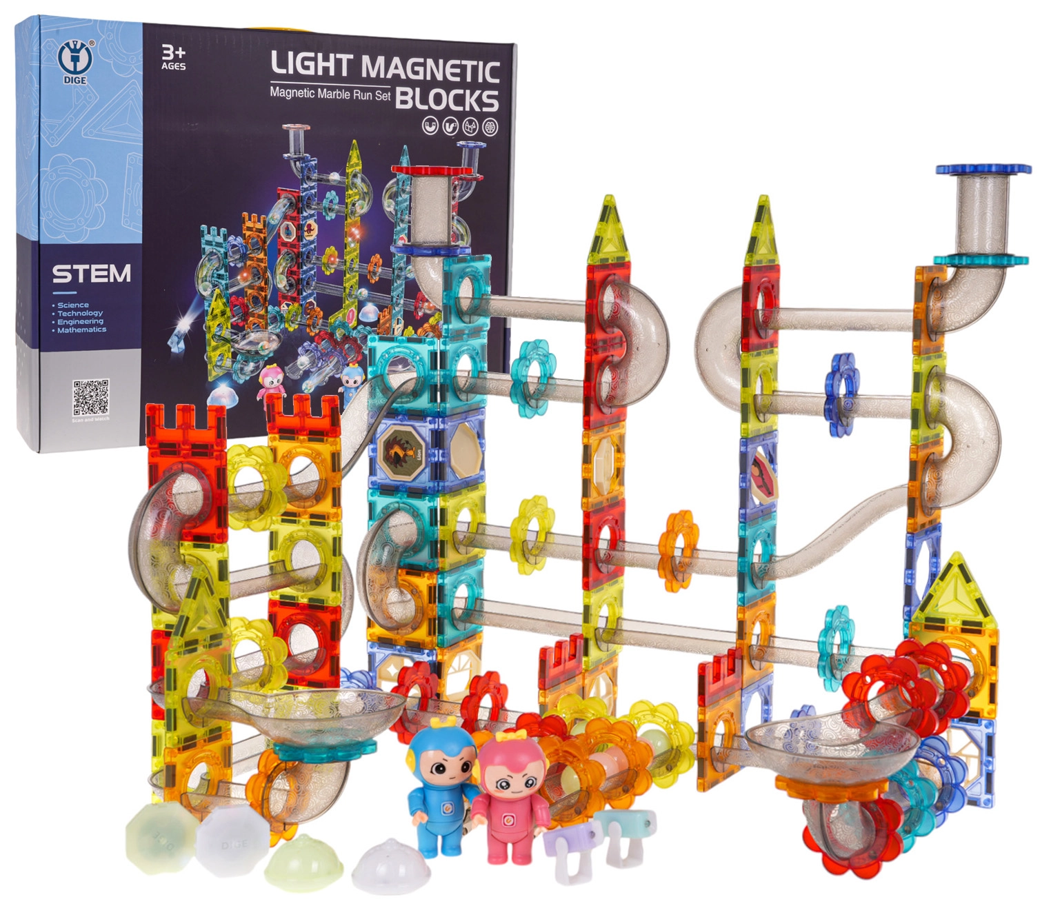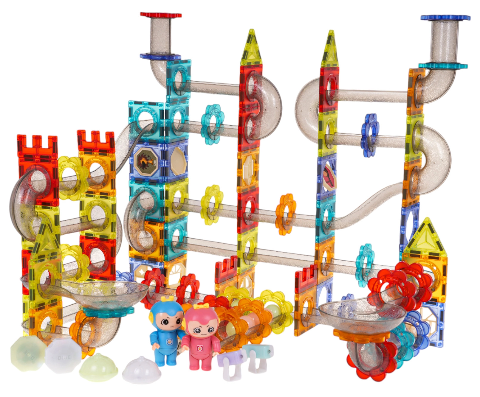 1. Sviluppo della creatività: Il set include in totale 228 pezzi di diverse forme e colori, tra cui elementi trasparenti, biglie magnetiche, passaggi e molti altri accessori. Tutto ciò stimola la creatività e l’immaginazione dei bambini.
