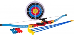 La confezione include anche dardi da lancio con ventose e un bersaglio con ventosa in gomma che può essere fissato su una superficie liscia. Le morbide ventose su frecce e dardi garantiscono la massima sicurezza, mentre il gioco favorisce la coordinazione occhio–mano e rinforza i muscoli di spalle e schiena.