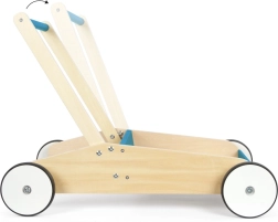 La solida struttura in legno con freno aiuta a controllare la velocità e dà ai piccoli camminatori sicurezza durante i primi passi.
