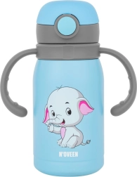 Pratica borraccia per bambini con capacità di 300 ml in colore blu con elefantino, ideale per bevande calde e fredde. Grazie allo speciale manico si trasporta facilmente ed è comoda da cui bere anche per i bambini.