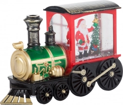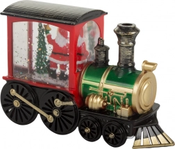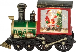 Questa bellissima lanterna natalizia aggiunge a ogni stanza un'atmosfera calda e festosa. È progettata a forma di locomotiva e all'interno si trova Babbo Natale con un albero, delicatamente illuminato da luci LED. I glitter all'interno creano l'illusione di neve cadente che brilla alla luce, conferendo a tutta la decorazione un aspetto unico.