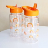 Bottiglia per bambini trasparente con allegro motivo arcobaleno e capacità di 450 ml, ideale per l’asilo e le gite. Grazie al materiale Tritan è leggera e resistente; il tappo con cannuccia garantisce un’idratazione a prova di perdite e confortevole. Si abbina perfettamente al set dello stesso design – borraccia, zainetto e portapranzo.