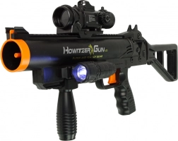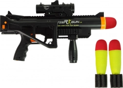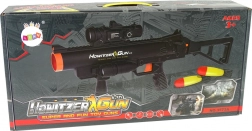 Questo lanciagranate per bambini è perfettamente attrezzato per il gioco d’azione in casa e all’aperto. Sul lato ha una torcia funzionante per illuminare l’ambiente, in alto un oculare/ottica per una mira migliore e sul retro un calciolo ribaltabile per una presa stabile sulla spalla. Uno speciale meccanismo a molla assicura un tiro potente accompagnato da suoni realistici di esplosione, ricarica e raffiche di colpi. I razzi in schiuma sono morbidi e sicuri.