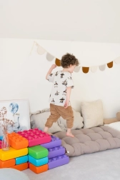 Pezzi morbidi, elastici e durevoli con sicurezza certificata, adatti alla cameretta, alla scuola dell’infanzia e al giardino.