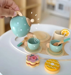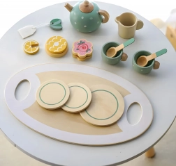 Regala ai bambini una magica festa del tè con questo set in legno per il gioco. Include tutto il necessario per un perfetto pomeriggio di tè, compresi teiera, tazzine, piattini e un vassoio. Il set sviluppa la creatività e le abilità sociali dei bambini.