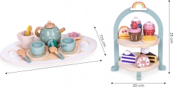 Questo splendido set immerge i bambini nel mondo degli adulti, dove si divertiranno in modo fantastico con la loro famiglia. Include tutto ciò che è necessario per organizzare un pomeriggio speciale: teiera, tazzine, piattini e un pratico vassoio. Nessun tè è completo senza dolci, quindi il set include colorati biscotti, tortine e muffin che delizieranno con il loro aspetto realistico. Grazie a questi giocattoli, il bambino può interpretare il ruolo di un adulto e invitarvi a un delizioso tè e spuntini dolci. Oltre al grande divertimento, il vostro bambino svilupperà la sua immaginazione e abilità manuali, e imparerà anche come preparare un delizioso tè o caffè e acquisirà le regole del galateo a tavola.