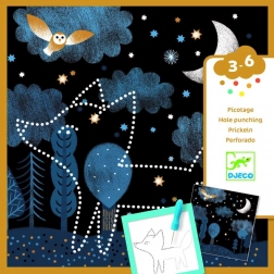 Set creativo di Djeco per bambini 3–6 anni che sviluppa la motricità fine, insegna a usare la punzonatrice/ago da perforazione e porta la gioia di creare immagini originali. Grazie al supporto intelligente i fogli restano fermi mentre i bambini, seguendo le sagome, realizzano magici motivi perforati. Inclusi istruzioni illustrate passo dopo passo e materiali con certificazione FSC.