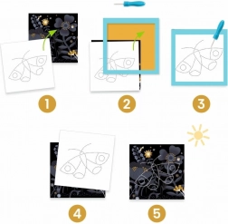 Scoprite un’attività divertente ispirata al metodo Montessori. I bambini esercitano in sicurezza concentrazione, precisione e controllo della pressione creando bellissime immagini retroilluminate. Il supporto in schiuma e cartone rigido mantiene i fogli stabili, facilitando il lavoro dei piccoli creatori con sicurezza.