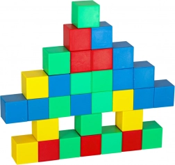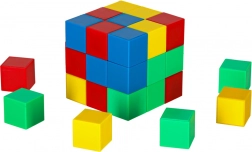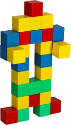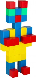 Il set di blocchi da costruzione contiene 64 blocchi magnetici che si collegano tramite magneti e permettono di creare costruzioni diverse. Ogni blocco ha una forma quadrata, offrendo al bambino la possibilità di creare liberamente sia costruzioni semplici che più complesse. I blocchi sono di colori intensi: verde, giallo, rosso e blu, che attirano l'attenzione e invitano alla creazione di progetti colorati.