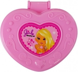 Questo set di bellezza rosa include articoli cosmetici progettati appositamente per i bambini, tutti a forma di cuore accattivante.