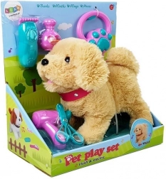 Cagnolino di peluche al guinzaglio a batterie – crema con accessori