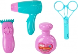 Il set include phon, tagliacapelli, forbicine e “profumo”, così i bambini possono pettinare, decorare e prendersi cura del cagnolino come in un salone.