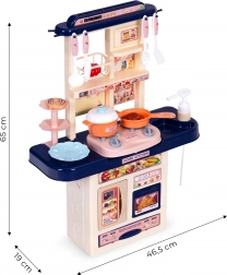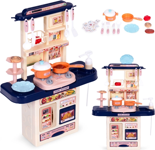 La cucina ha dimensioni compatte per un facile posizionamento in cameretta, antine apribili e spazi contenitivi per tutti gli accessori. È sicura, senza spigoli vivi, adatta ai bambini dai 3 anni e consente il gioco anche a più bambini contemporaneamente.