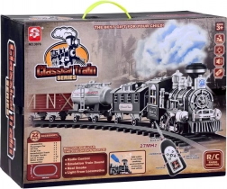 Questo eccellente modello di set treno è dotato di telecomando e offre uno spettacolare movimento avanti e indietro. La locomotiva si illumina ed emette fumo dal camino, aggiungendo autenticità al viaggio. Gli effetti sonori simulano suoni realistici di treno come fischi, battito delle ruote sui binari e campanelli. Il modello è un regalo ideale per tutti gli appassionati di set treno.