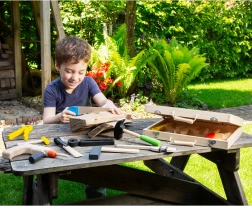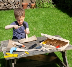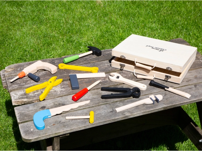 Questa valigetta in legno contiene tutto ciò di cui il tuo piccolo artigiano ha bisogno per le sue avventure. Con un occhio alla sicurezza, ogni strumento è progettato per essere adatto ai bambini.