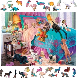 I puzzle in legno WOODEN CITY Cuccioli birichini portano divertimento per bambini e adulti. La forma originale dei pezzi in silhouette di animali, edifici e oggetti aggiunge una nuova dimensione alla composizione e alcuni elementi possono essere usati anche come piccole figurine autonome. Grazie ai dettagli enfatizzati al laser risaltano sia il motivo che la qualità della lavorazione.