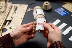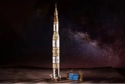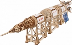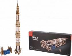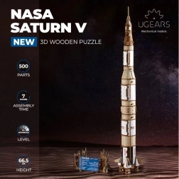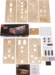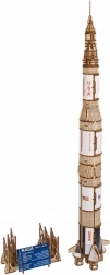 Il modello è realizzato in legno di qualità, ecologico con pezzi pretagliati con precisione per un assemblaggio senza colla. Grazie alle istruzioni dettagliate, è adatto anche a principianti abili, mentre i modellisti esperti apprezzeranno l’ingegnosità tecnica, gli elementi meccanici e i dettagli, incluso il modulo lunare.