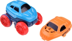 La macchinina con batteria ricaricabile e illuminazione LED parte da sola premendo un pulsante. Le fasce in gomma sulle ruote posteriori aumentano la trazione sulla pista.